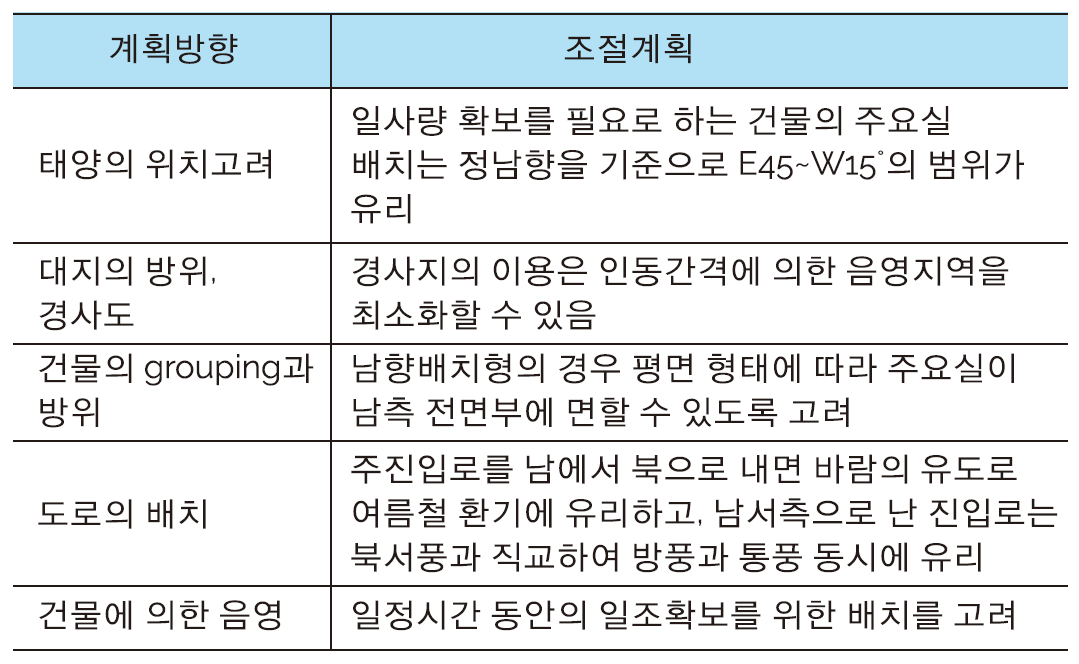 건물의 배치계획시 고려사항